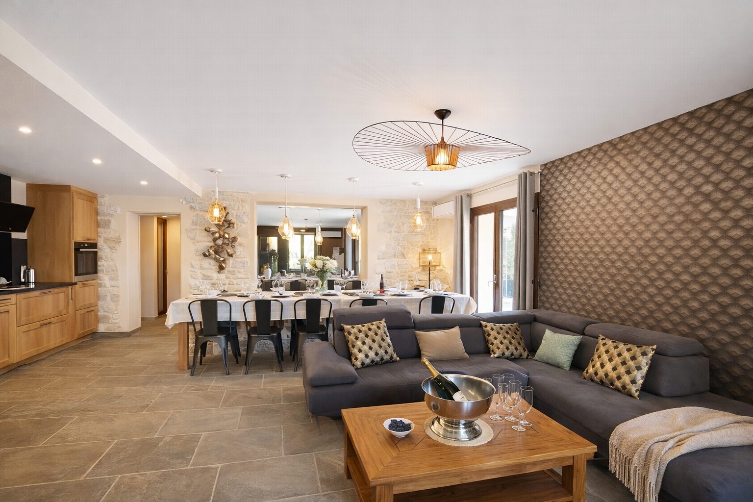 D’une surface de 300 m², dont 200 m² habitables, la Bastide, classée 5 étoiles, peut accueillir jusqu’à 18 personnes pour des séjours de groupe.