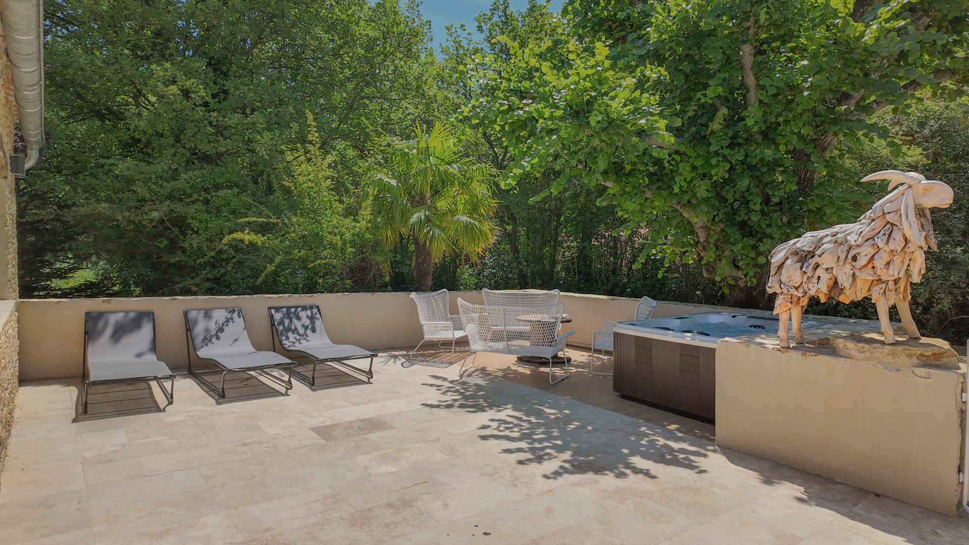 - Une grande terrasse ombragée de 130 m², parfaite pour des moments de convivialité partagés en toute tranquillité.